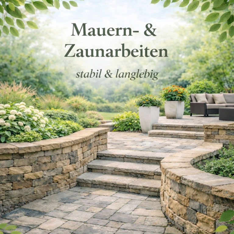 Wir übernehmen fachgerechte Mauer- und Zaunarbeiten für Ihren Garten und Außenbereich. Ob neue Zäune, Reparaturen oder kleine Mauern – wir beraten Sie bei der Auswahl der Materialien und sorgen für eine saubere, stabile Umsetzung. Zuverlässig, präzise und passend zum Gesamtbild Ihres Gartens.