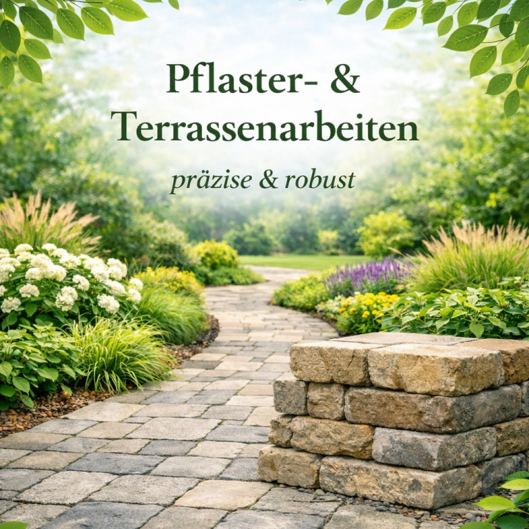 Wir gestalten und verlegen Pflasterflächen und Terrassen fachgerecht und langlebig. Ob Wege, Einfahrten oder Sitzplätze – wir unterstützen Sie bei der Materialauswahl und sorgen für eine saubere, stabile Ausführung. So entstehen funktionale und schöne Außenbereiche zum Wohlfühlen.